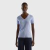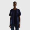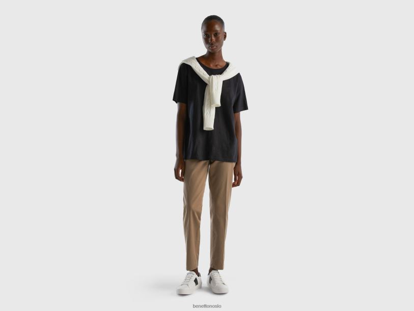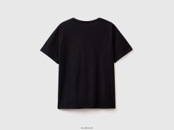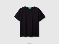 svart Benetton kvinner T-skjorte med rund hals i slub bomull 20TRB3862