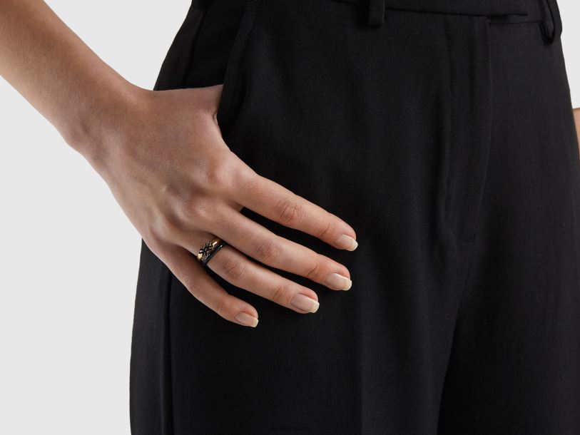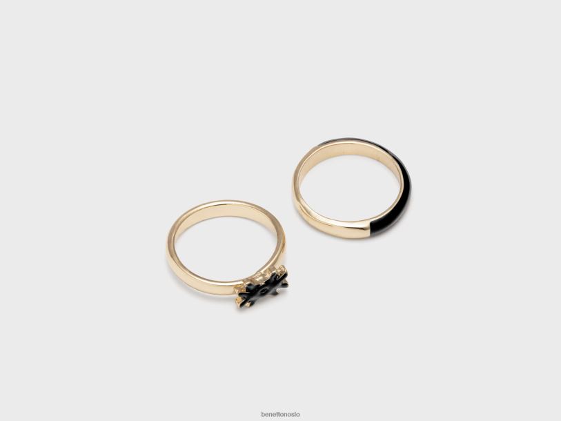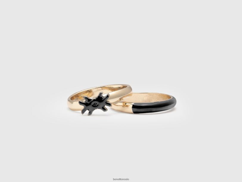 svart Benetton kvinner to ringer med sorte emaljerte detaljer 20TRB707