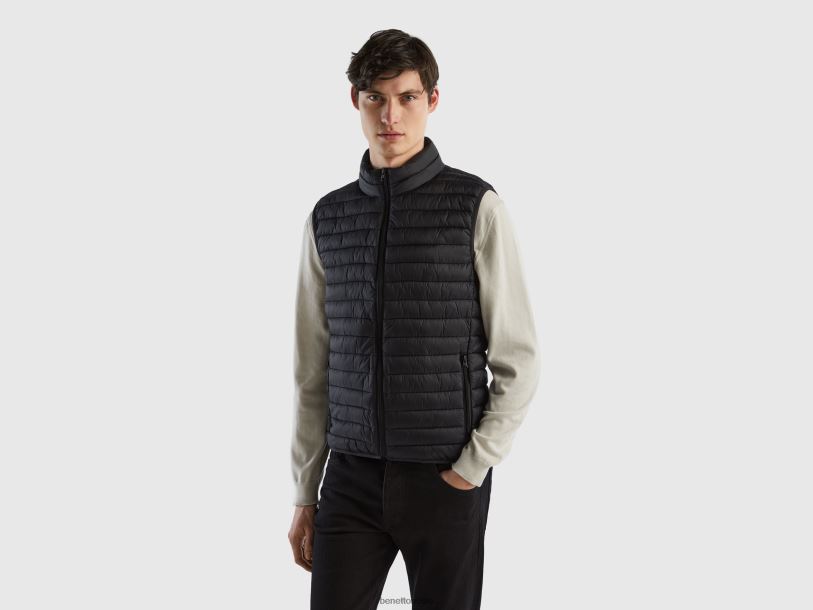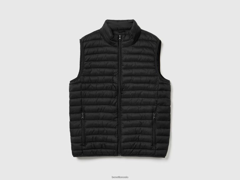 svart Benetton menn ermeløs pufferjakke med resirkulert vatt 20TRB1184