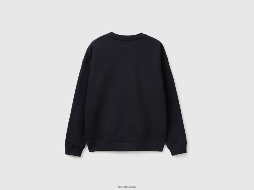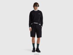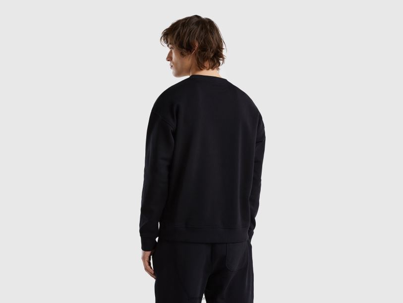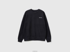 svart Benetton menn genser med rund hals og logotrykk 20TRB1308