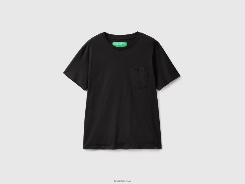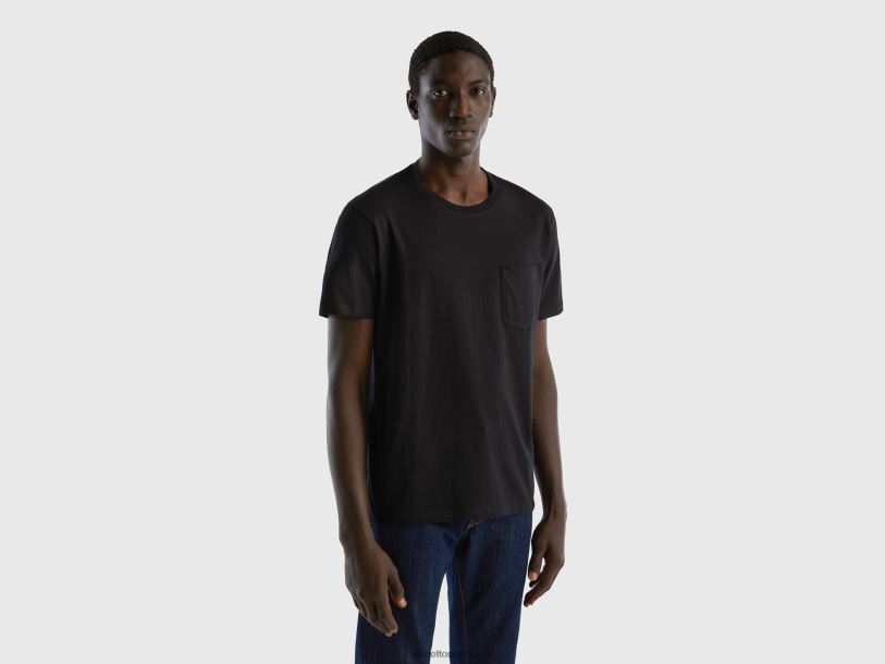 svart Benetton menn T-skjorte i 100 % bomull med lomme 20TRB1284