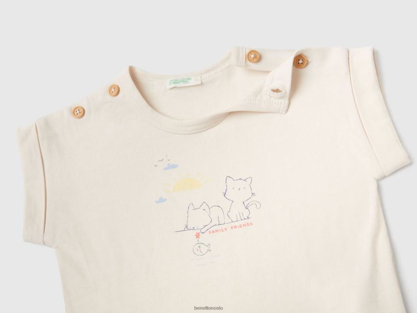 vanilje Benetton barn kortermet t-skjorte med trykk 20TRB3152