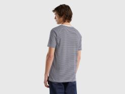 hvit Benetton menn stripet t-skjorte i 100% bomull 20TRB1291