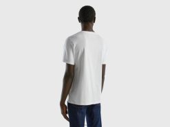 hvit Benetton menn slim fit t-skjorte i stretchbomull 20TRB1294