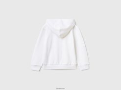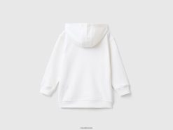 hvit Benetton barn hettegenser i stretch, økologisk bomull 20TRB2238
