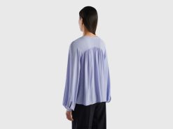 lavendel Benetton kvinner langfiber t-skjorte i bomull 20TRB337