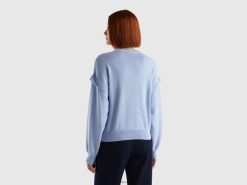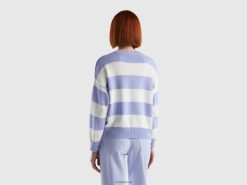 lavendel Benetton kvinner t-skjorte i ren bomull med v-hals 20TRB375