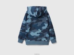 lyse blå Benetton barn kamuflasje-hettegenser i 100% bomull 20TRB4828