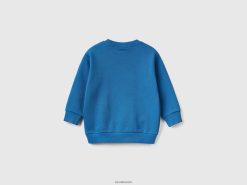 lyseblå Benetton barn genser med rund hals og trykk 20TRB5101