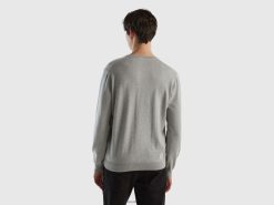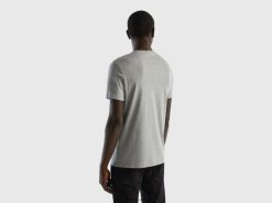 lysegrå Benetton menn t-skjorte i langfiber bomull 20TRB1261