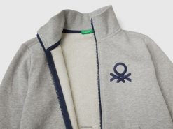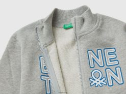 lysegrå Benetton barn genser i ren bomull med glidelås 20TRB1870