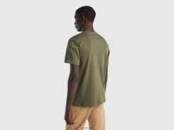 militærgrønt Benetton menn T-skjorte i 100 % bomull 20TRB1274