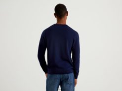 mørke blå Benetton menn langfiber t-skjorte i bomull 20TRB4687