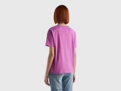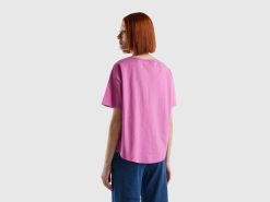 rosa Benetton kvinner kortermet t-skjorte i lett bomull 20TRB399