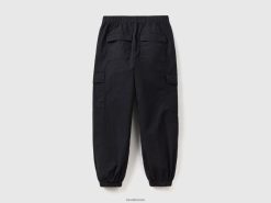 svart Benetton barn fallskjermbukse med store lommer 20TRB5463