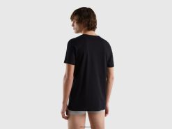 svart Benetton menn langermet t-skjorte i ren bomull 20TRB1304