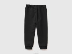 svart Benetton barn hettegenser med glidelås og brodert logo 20TRB2509