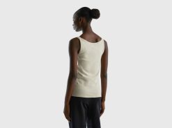 beige Benetton kvinner beige langermet t-skjorte i 100 % bomull 20TRB401