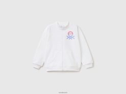 hvit Benetton barn hettegenser i stretch, økologisk bomull 20TRB2238