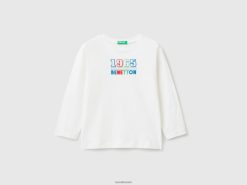 hvit Benetton barn langermet t-skjorte i økologisk bomull 20TRB5083