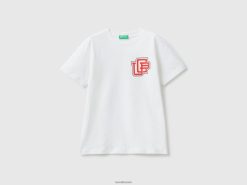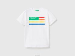 hvit Benetton barn T-skjorte i 100 % bomull med logo 20TRB4786