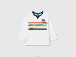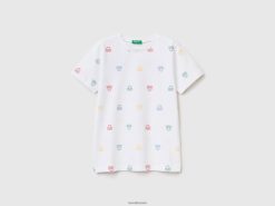 hvit Benetton barn t-skjorte med glitrende logo i økologisk bomull 20TRB2505