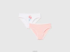 hvit Benetton barn to par mønstret undertøy i stretchbomull 20TRB5511
