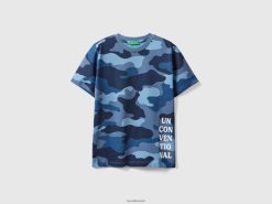 blå Benetton barn T-skjorte i 100 % bomull med trykk 20TRB4770
