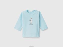 turkis Benetton barn langermet t-skjorte i økologisk bomull 20TRB5773