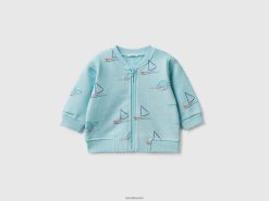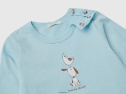turkis Benetton barn langermet t-skjorte i økologisk bomull 20TRB5773