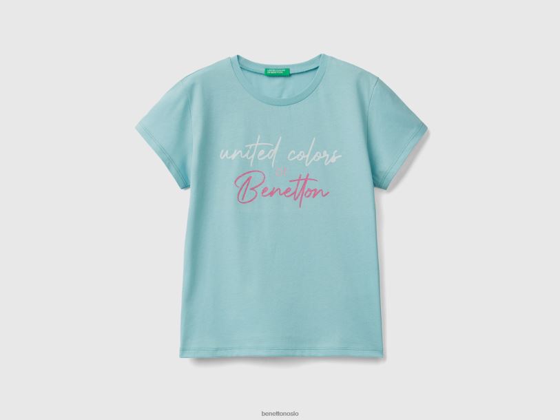 aqua Benetton barn t-skjorte med glitrende logo i økologisk bomull 20TRB5291