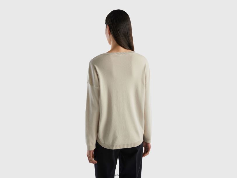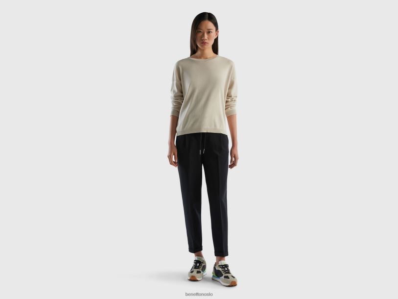beige Benetton kvinner bomullsgenser med rund hals 20TRB204