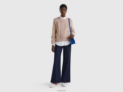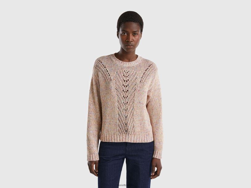 beige Benetton kvinner genser med åpent strikket motiv 20TRB48