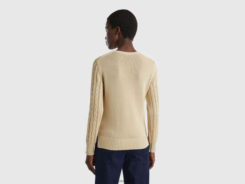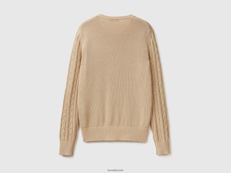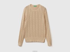 beige Benetton kvinner kabelstrikket genser 100% bomull 20TRB140