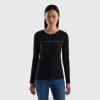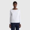 beige Benetton kvinner langermet t-skjorte i ren bomull 20TRB3778