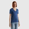 beige Benetton kvinner langfiber t-skjorte i bomull 20TRB432