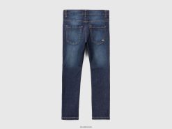 blå Benetton kvinner t-skjorte i ren bomull med v-hals 20TRB437
