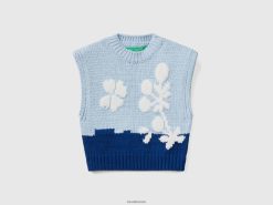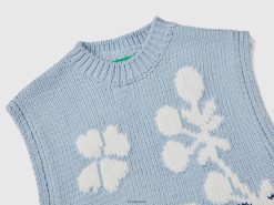 blå Benetton kvinner blå vest med blomsterinnlegg 20TRB3486