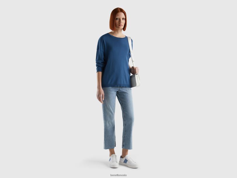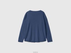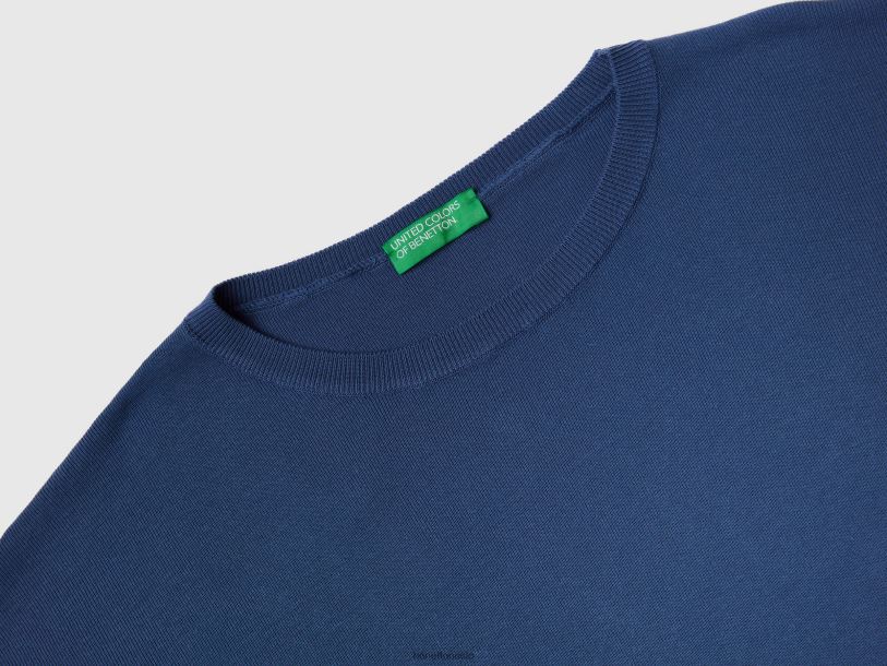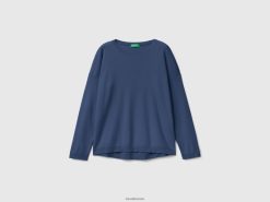 blå Benetton kvinner bomullsgenser med rund hals 20TRB162