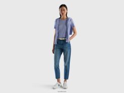 blå Benetton kvinner cropped jeans med høy midje 20TRB662