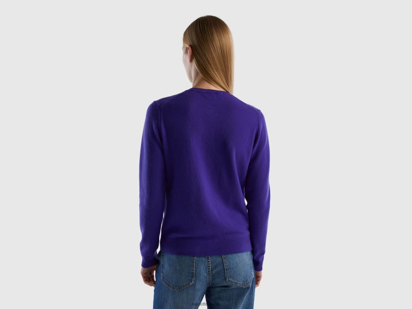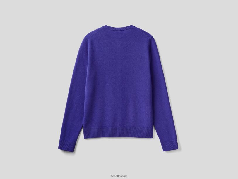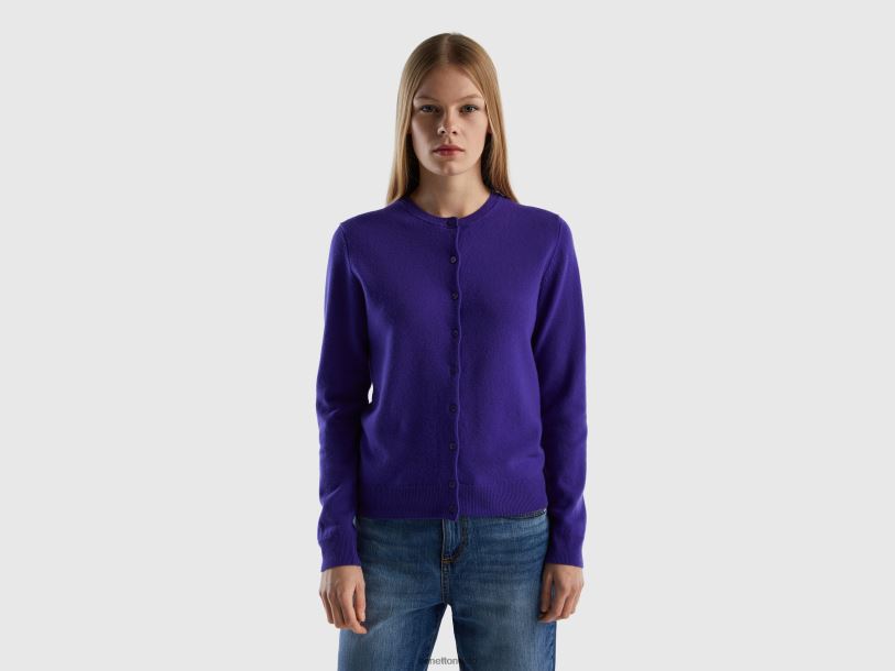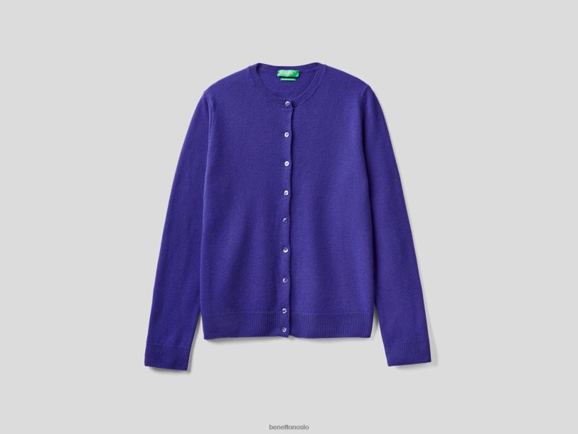 blå Benetton kvinner dypblå cardigan med rund hals i ren merinoull 20TRB158