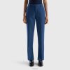 blå Benetton kvinner flytende bukse med snøring 20TRB4045