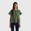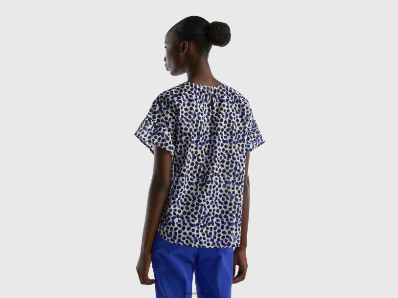 blå Benetton kvinner mønstret bluse i ren bomull 20TRB497