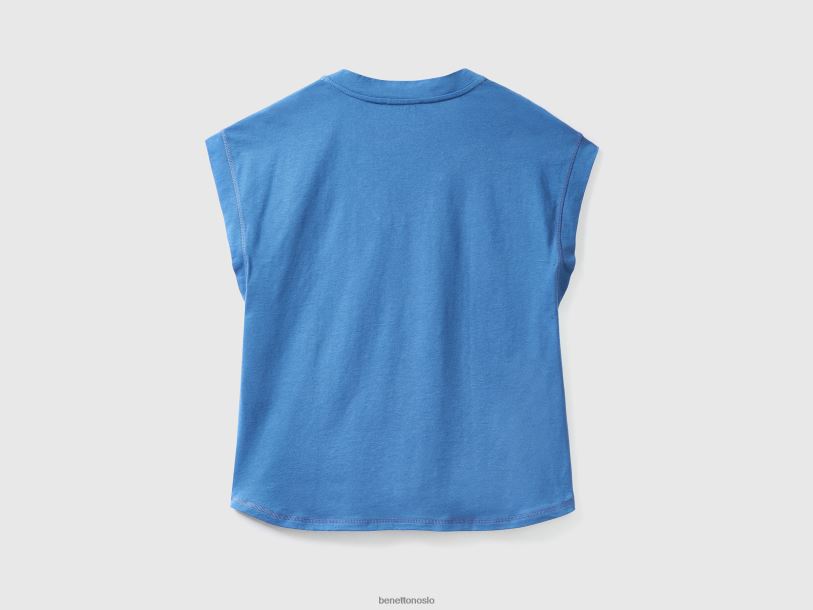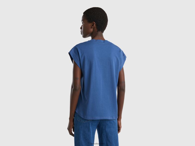 blå Benetton kvinner T-skjorte med v-hals i 100 % bomull 20TRB360