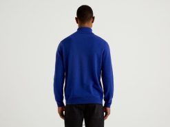 blå Benetton menn blå turtleneck i ren merinoull 20TRB1178