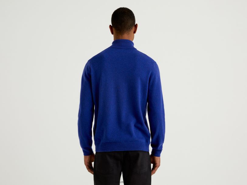 blå Benetton menn blå turtleneck i ren merinoull 20TRB4415