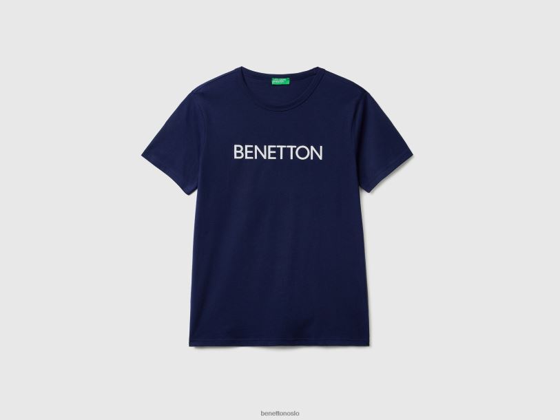 blå Benetton menn t-skjorte i økologisk bomull med logotrykk 20TRB4457