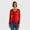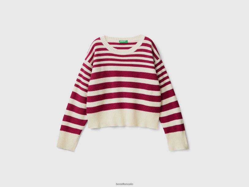 burgunder Benetton kvinner stripete genser i ullblanding 20TRB1
