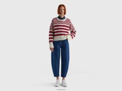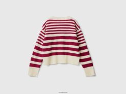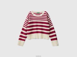 burgunder Benetton kvinner stripete genser i ullblanding 20TRB3576