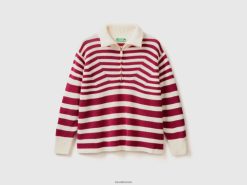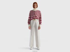 burgunder Benetton kvinner stripete genser med høy hals 20TRB61